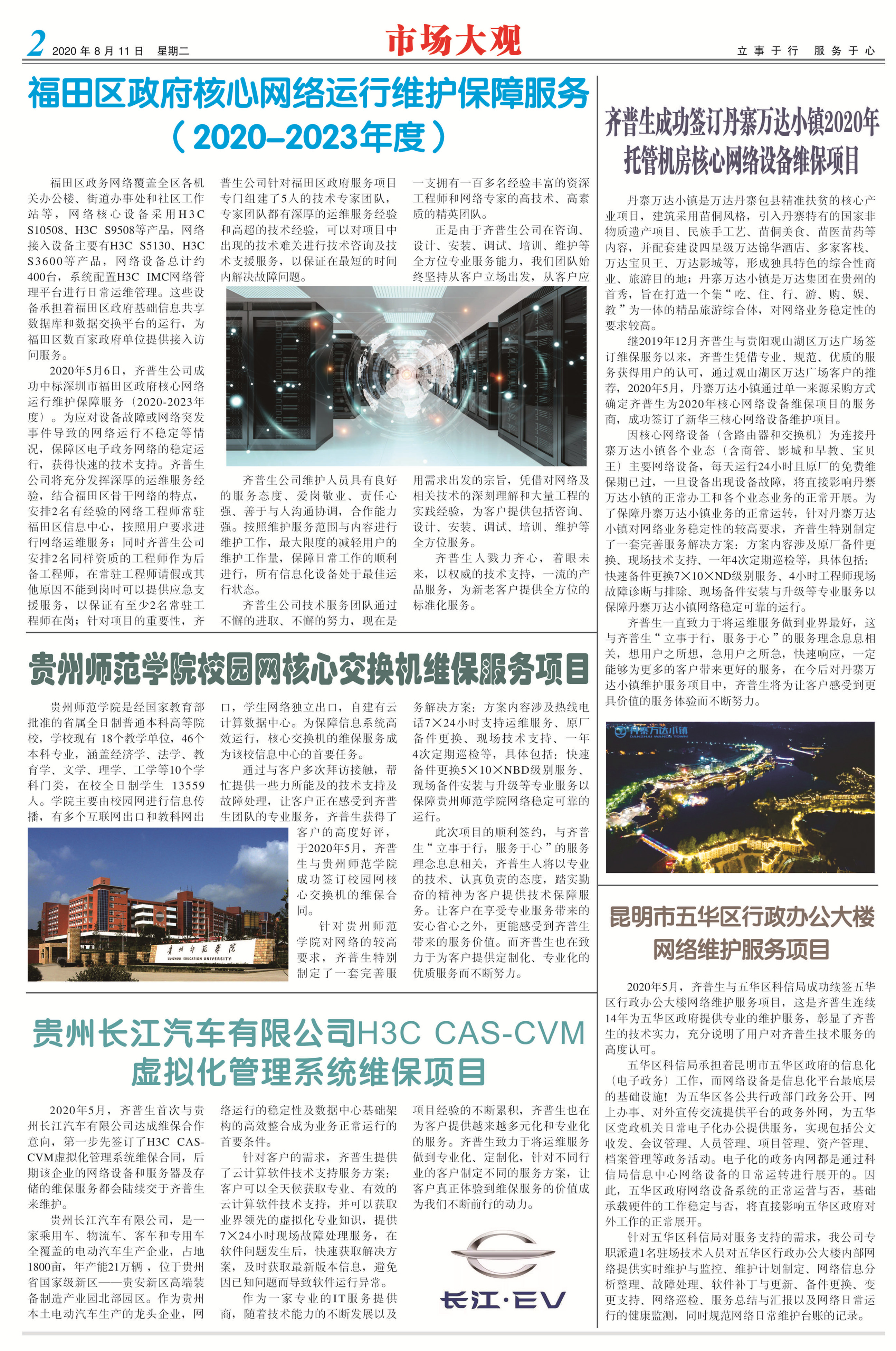 齊普生成功簽訂丹寨萬達小鎮2020年托管機房 核心網絡設備維保項目