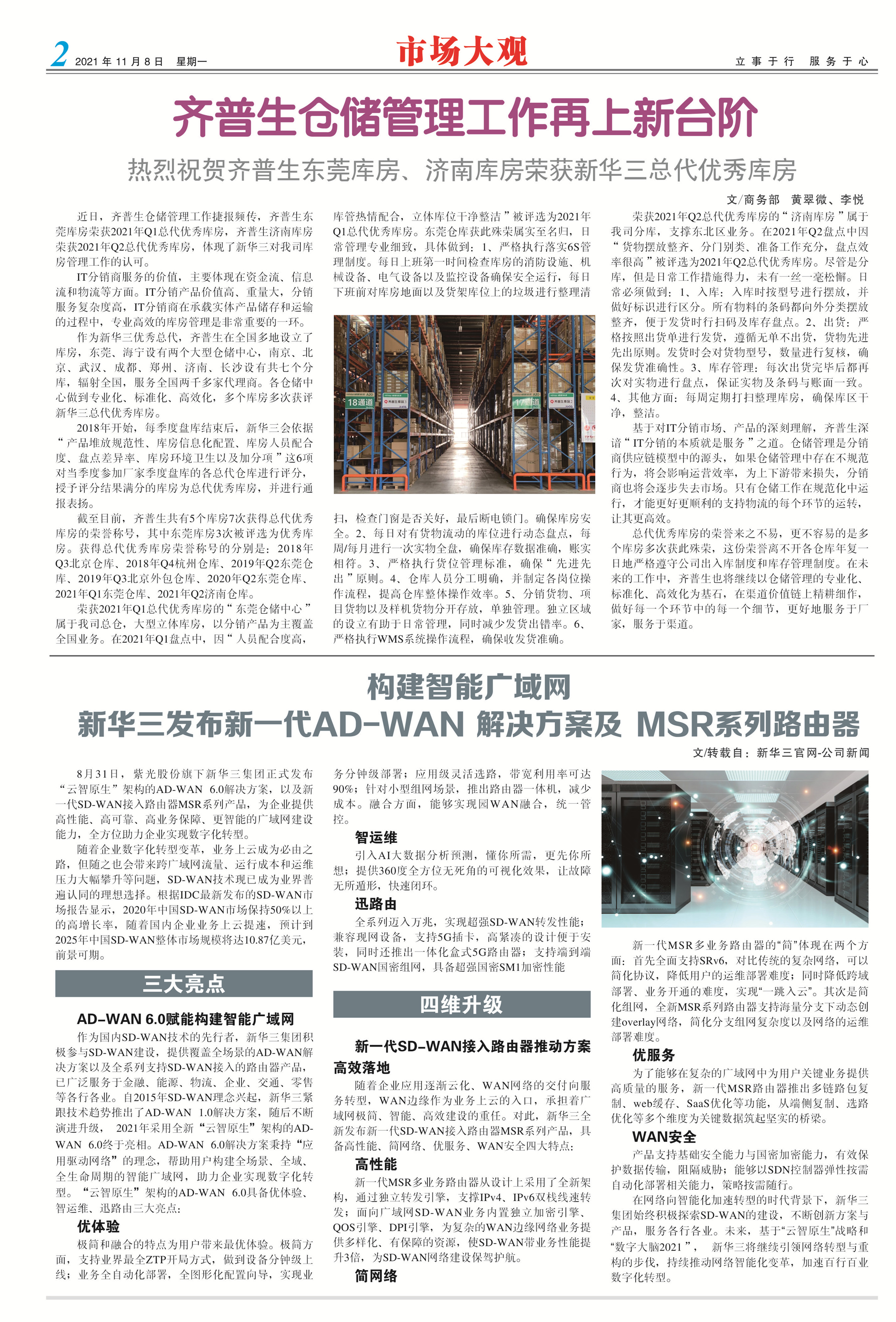 齊普生倉儲管理工作再上新臺階—— 熱烈祝賀齊普生東莞庫房、濟南庫房榮獲新華三總代優秀庫房